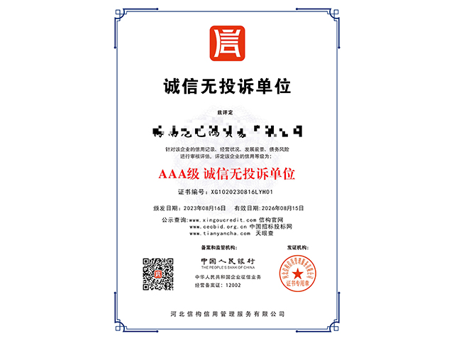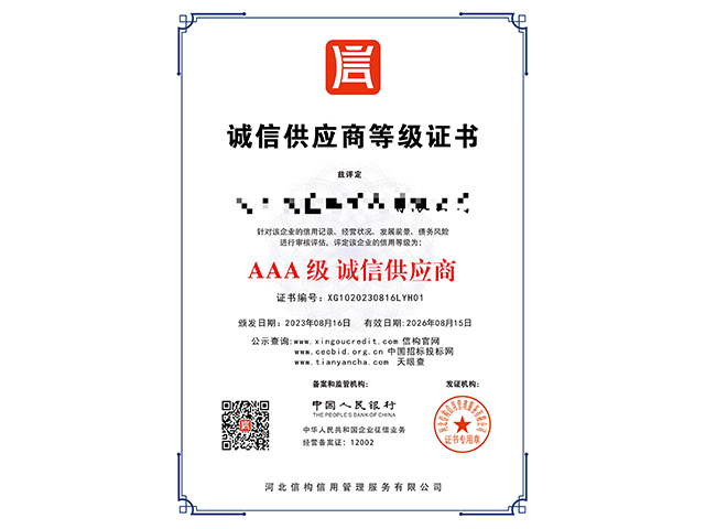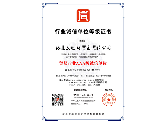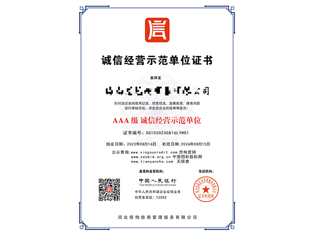 成功為超過(guò)56000個(gè)客戶完成AAA企業(yè)信用等級(jí)認(rèn)證